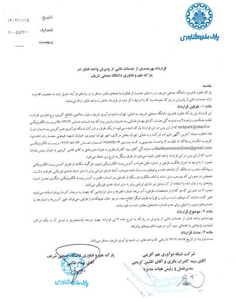 عضویت در پارک علم و فناوری دانشگاه شریف